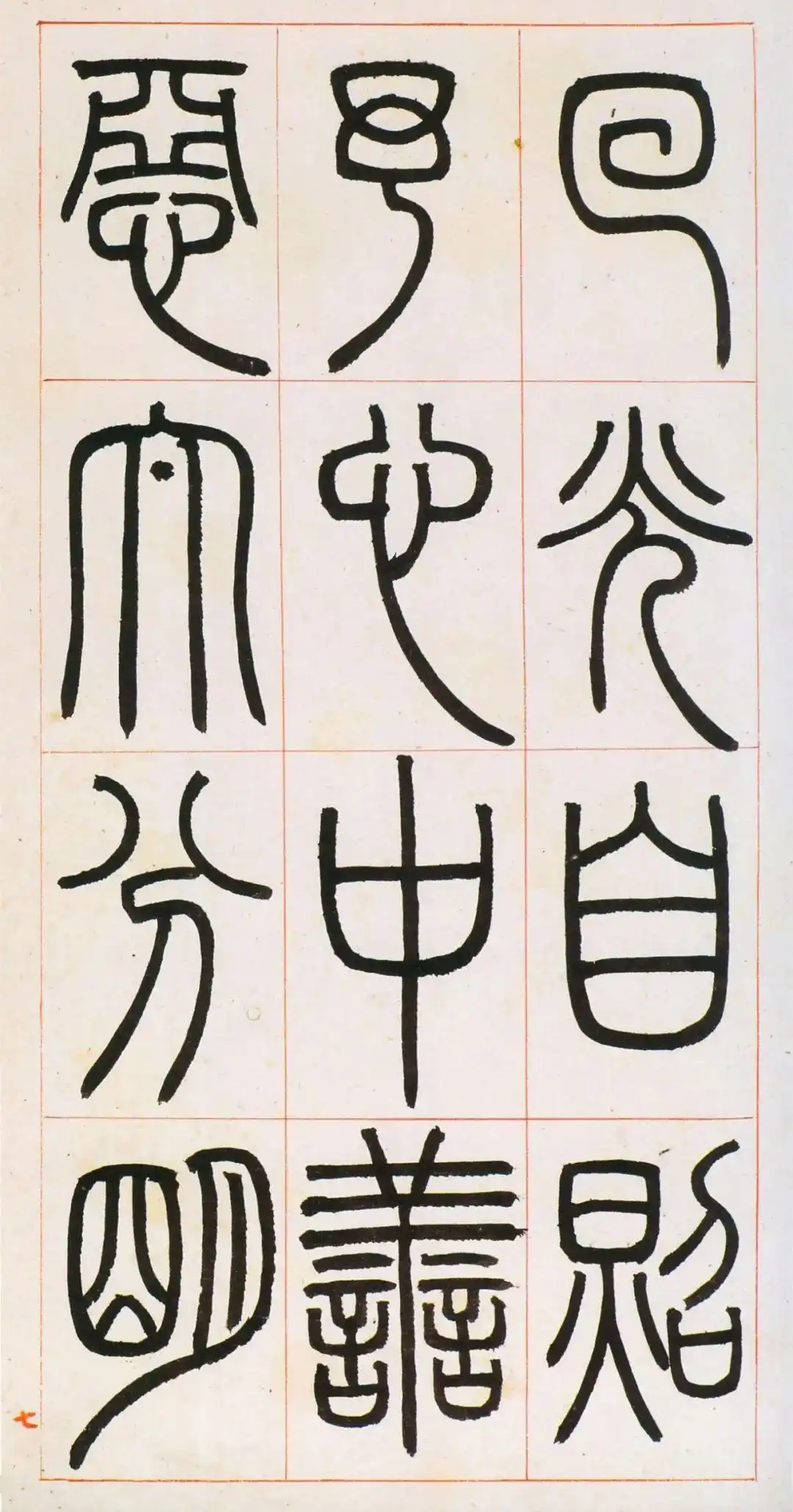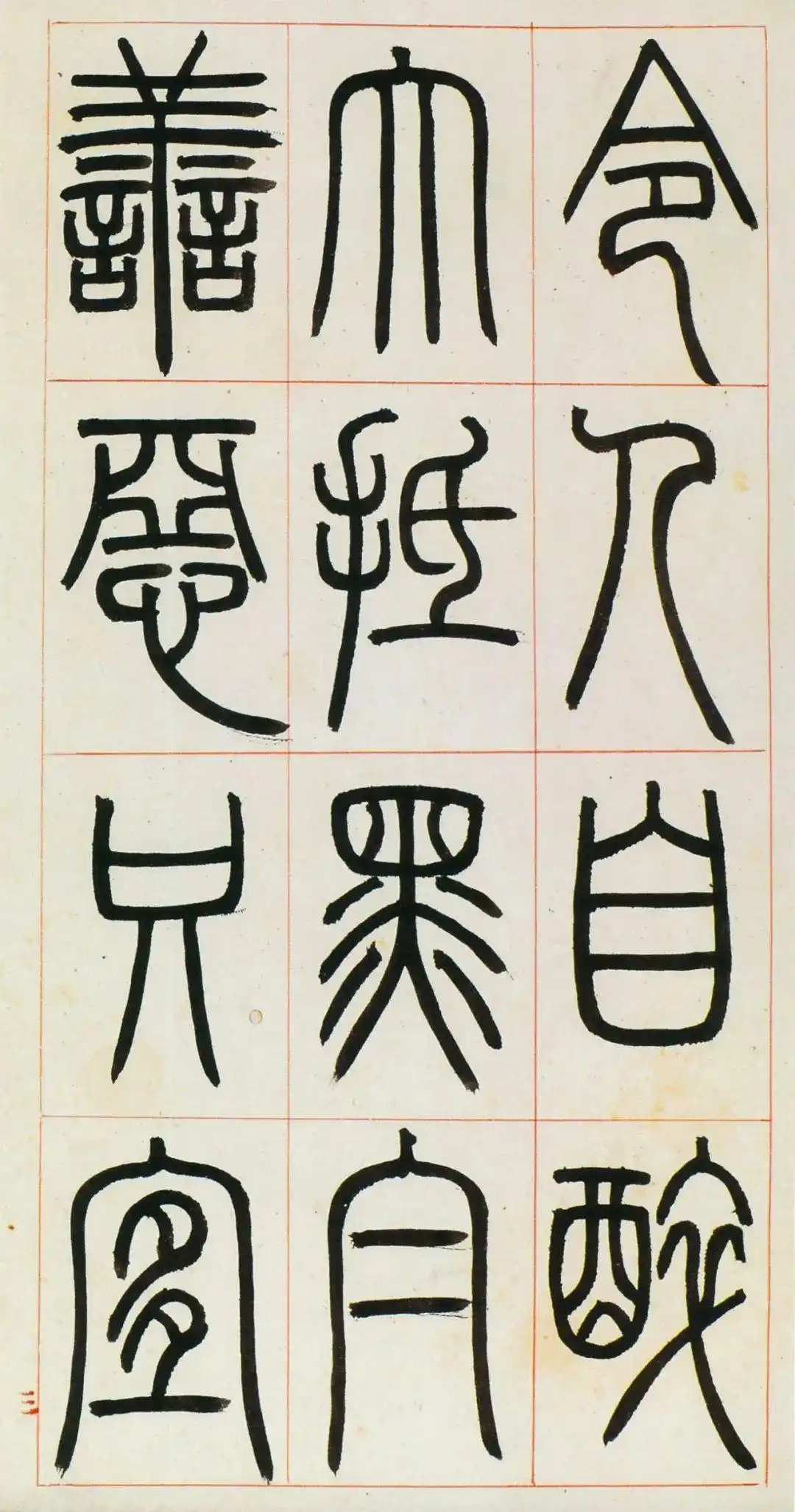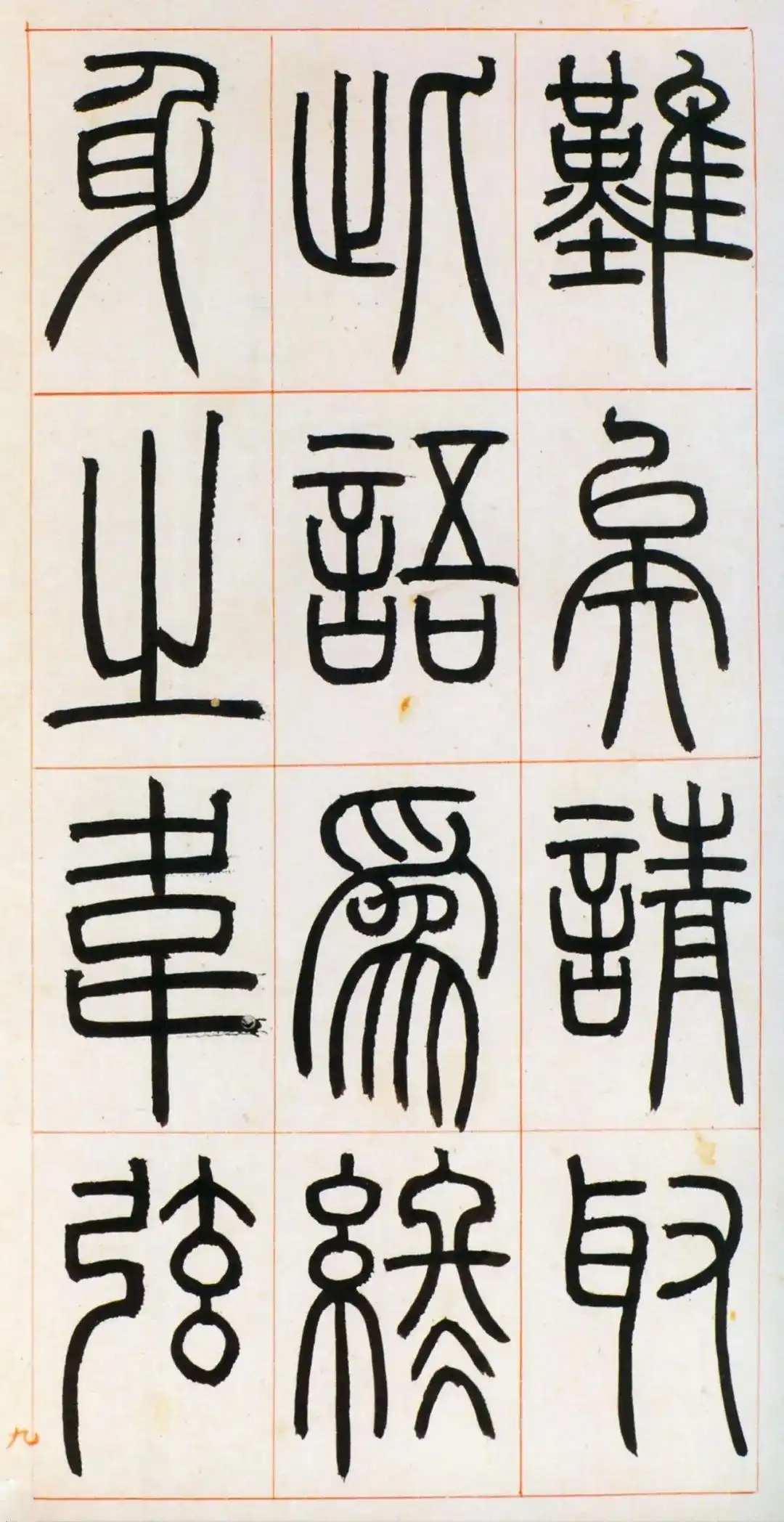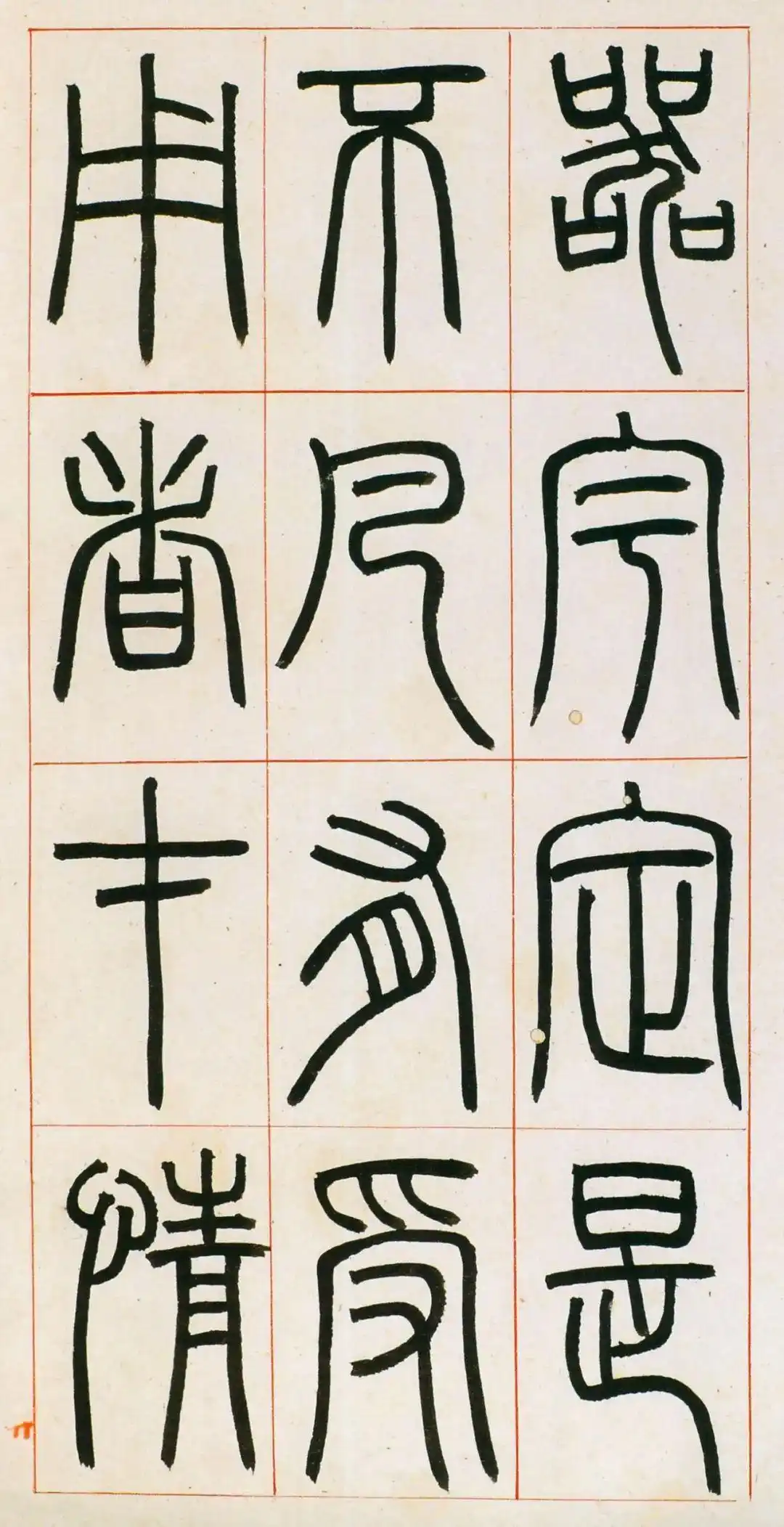 在《八闼册》中,线条转折处偶见方笔,如一些字,既保留了篆书的婉转流畅,又增添了隶书的刚健朴拙。这种“以隶作篆”的手法,打破了篆书千年来的单一笔法体系。