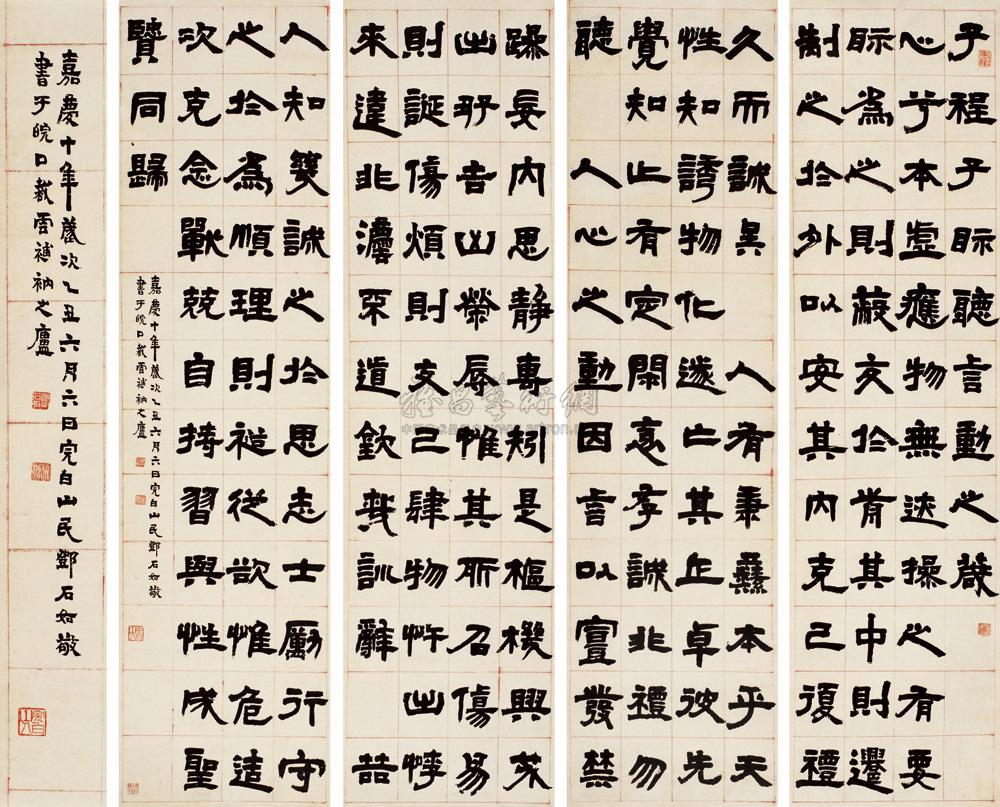 邓石如《隶书言箴四条屏》 轴 144.5×43cm×4 乙丑(1805) 上海道明 2010秋季拍卖会
