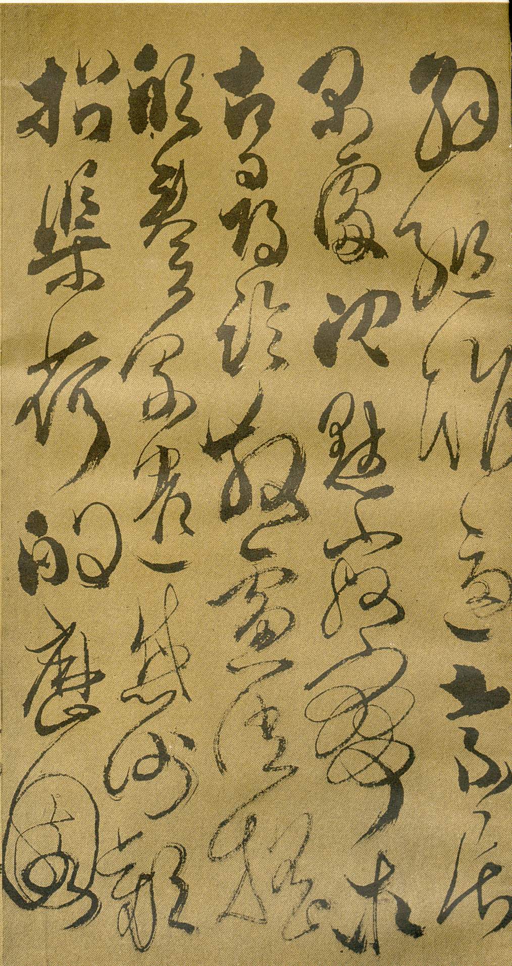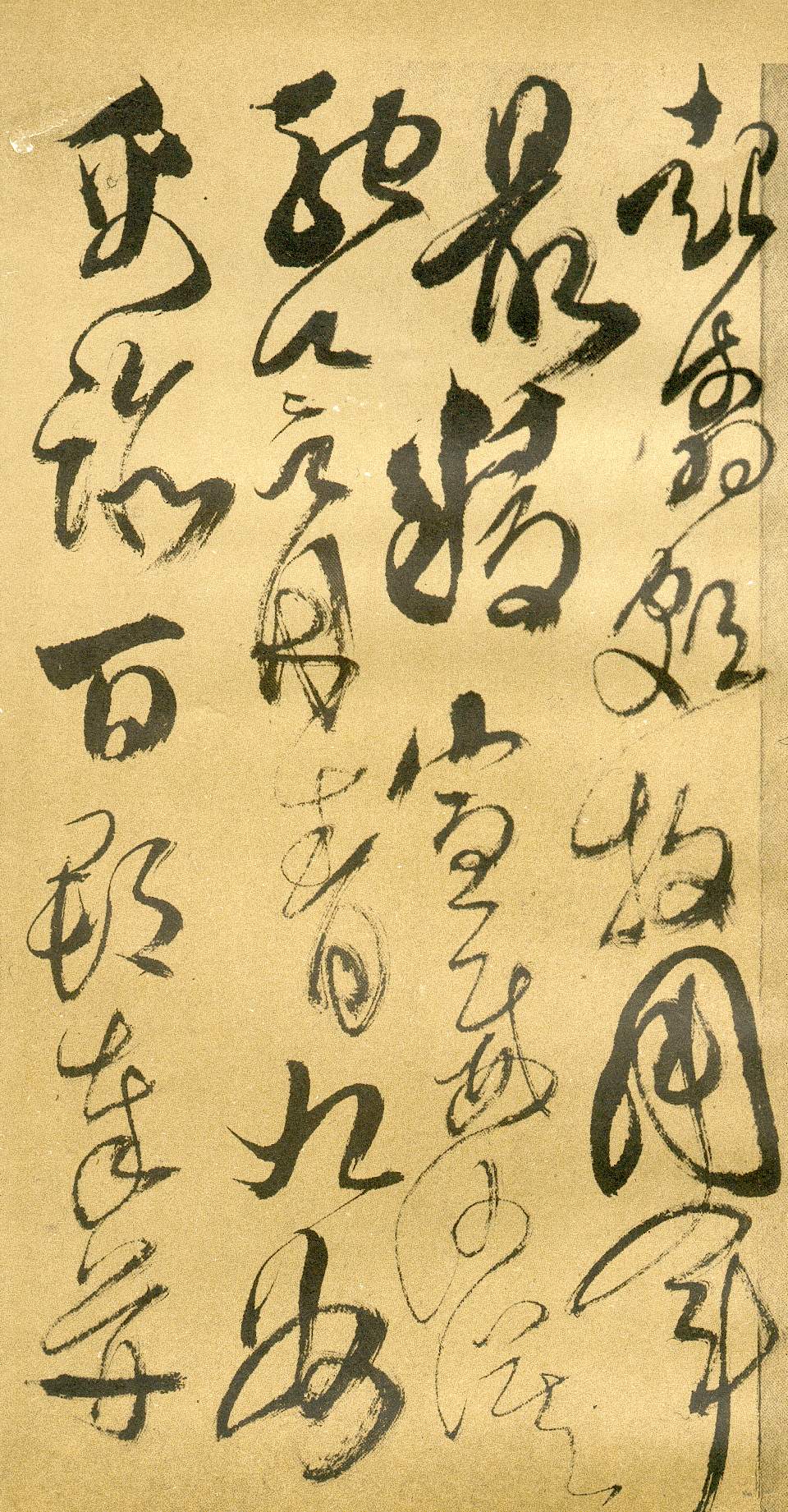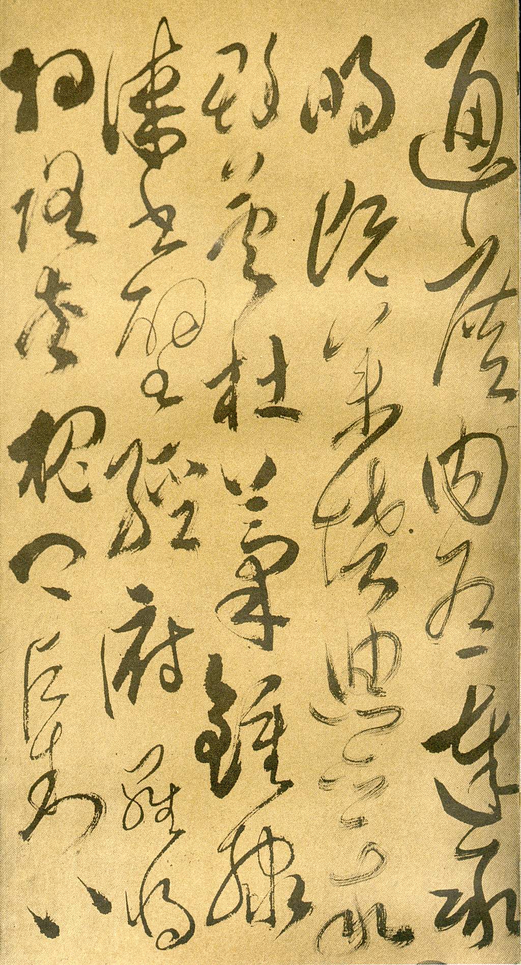 篆隶楷草虽为四册,但不同时。小楷千字文写于“朱衣案”狱中,傅山四十九岁。而草书千字文则写于暮年,正是傅山腕枯臂痛、人老眼花之时,所以无复矜庄,以刷土上墙似的败笔一枝,枒杈其毫,蓬然书之。虽然如此,却点画精到,行笔流畅,处处不离怀素之法,而气韵之上全出己意,给人以猛虎啸林,惊蛇入草之感。