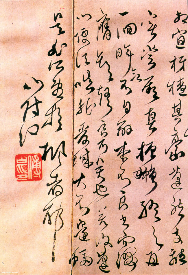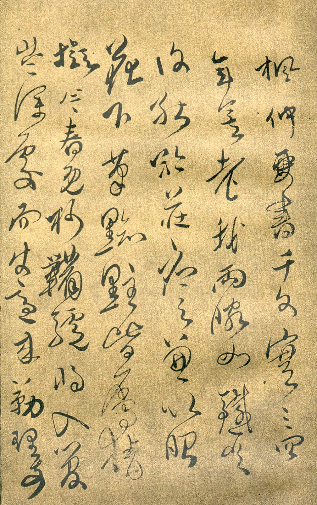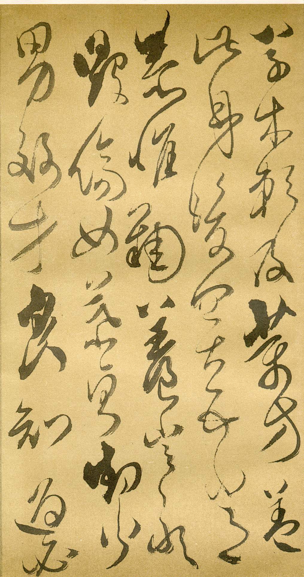 篆隶楷草虽为四册,但不同时。小楷千字文写于“朱衣案”狱中,傅山四十九岁。而草书千字文则写于暮年,正是傅山腕枯臂痛、人老眼花之时,所以无复矜庄,以刷土上墙似的败笔一枝,枒杈其毫,蓬然书之。虽然如此,却点画精到,行笔流畅,处处不离怀素之法,而气韵之上全出己意,给人以猛虎啸林,惊蛇入草之感。