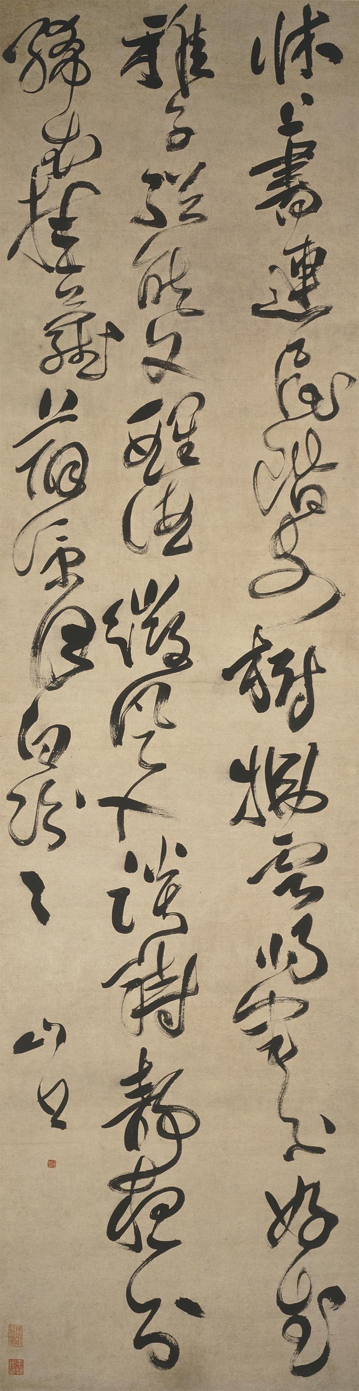 傅山 《草书杜甫五律诗轴》纸本草书 206.0×54.0cm 上海博物馆藏