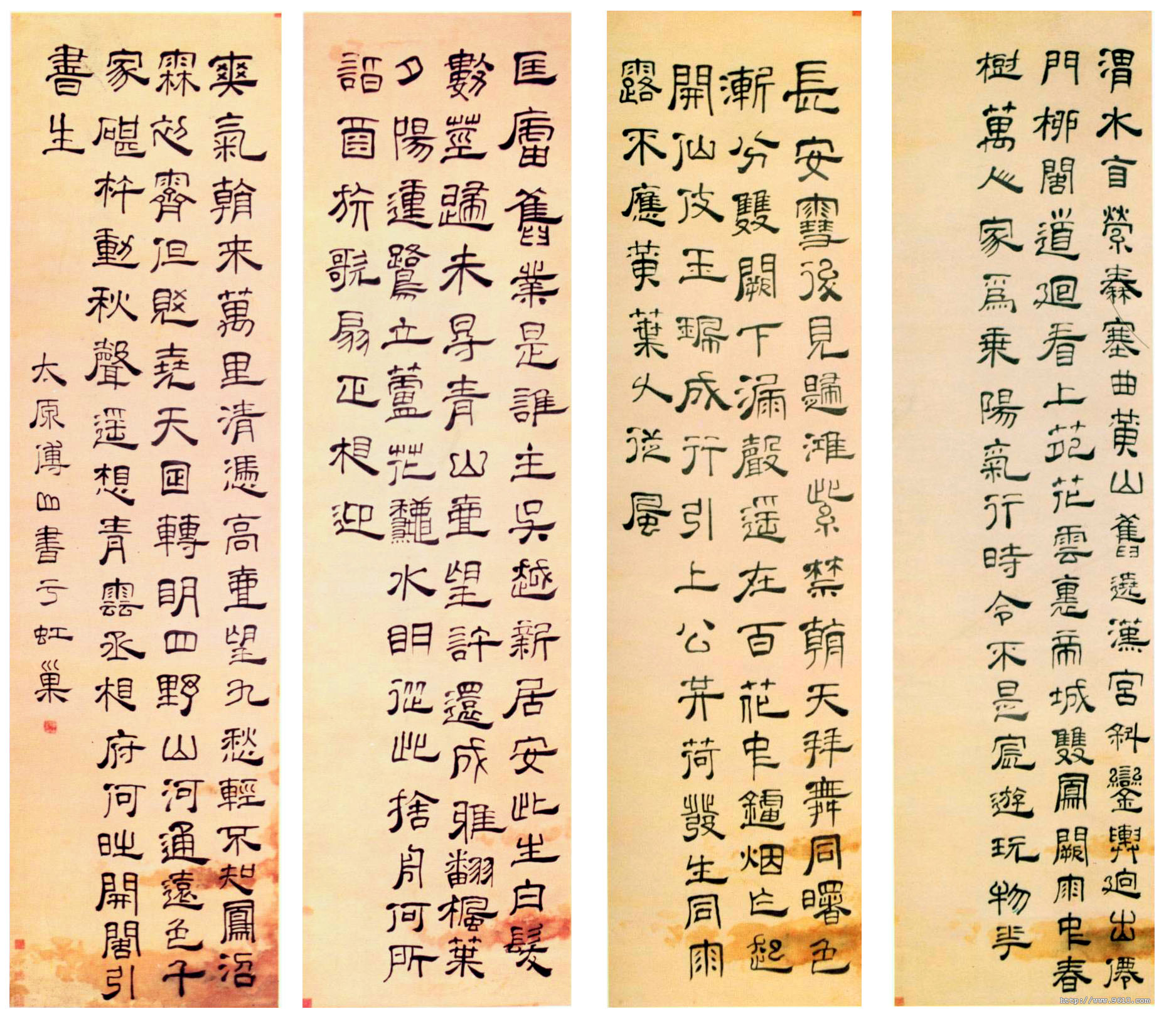 傅山《隶书四条屏》轴 绫本 206.1×55.5×4 四川省博物馆藏 可嘉扫描