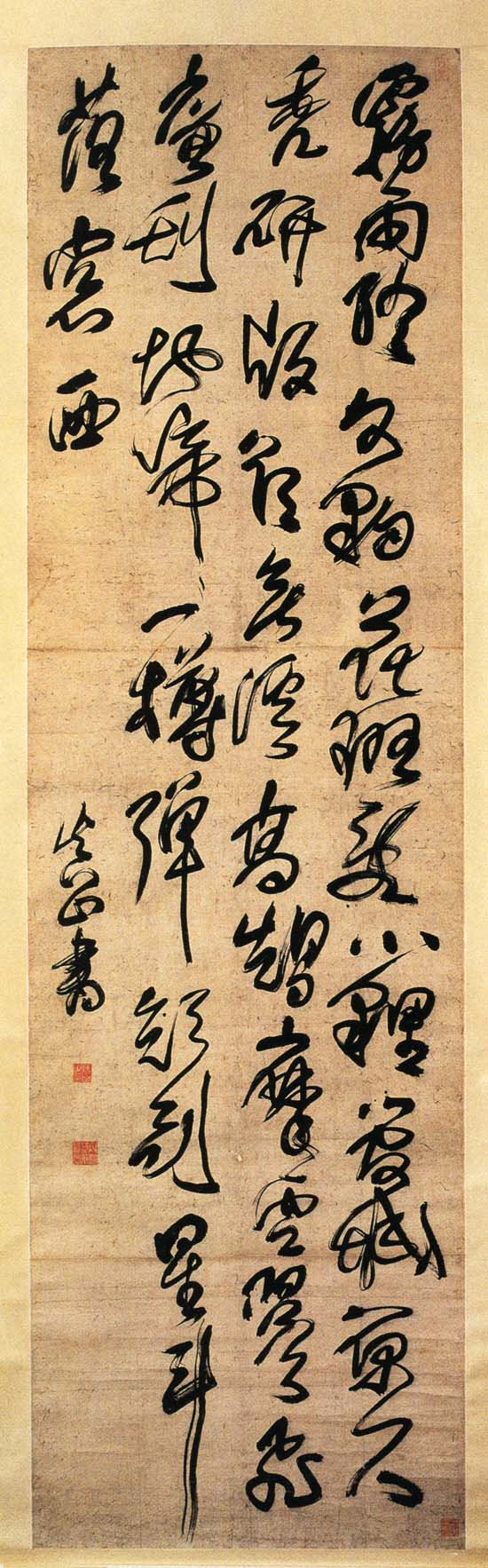 傅山《自作五言律诗轴》纸本草书 262×75cm 湖南省博物馆藏