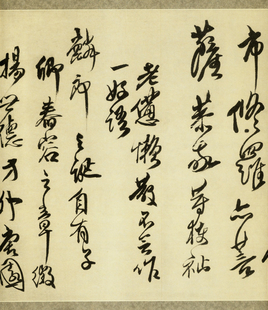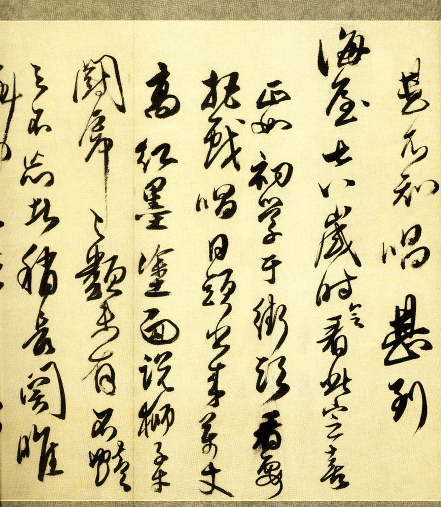 说明:1. 此诗或作于康熙六年丁未(1667年)。从傅山好友、关中文人李因笃《受祺堂诗集》所收《喜王大令毓青世兄生子》诗,知“毓青词丈”姓王。傅山以诗恭贺王毓青五十二岁喜得一子,皆因其在沙县任上做了很多有益于人民的好事,因而修得了功德,不知不觉中,天作阴德记,特赐一佳儿。 2. 此作曾经盛宣怀(1844-1916)、盛升颐父子收藏。 按语:傅山此卷以行草书《贺友人得子诗》,但字里行间,多寄黍离之悲,遭际之苦,友人五十余得子之乐反在其次了。估计其时正值明清易帜不久,国破家难,中心凄苦,难于强为欢笑也。故其书,亦排奡纵横,任性发越,如山间奔泉,激荡回环,急泻而下;又如壮士悲歌,穿云裂石,声情并集。是他笔随心运,得意忘象的佳作。