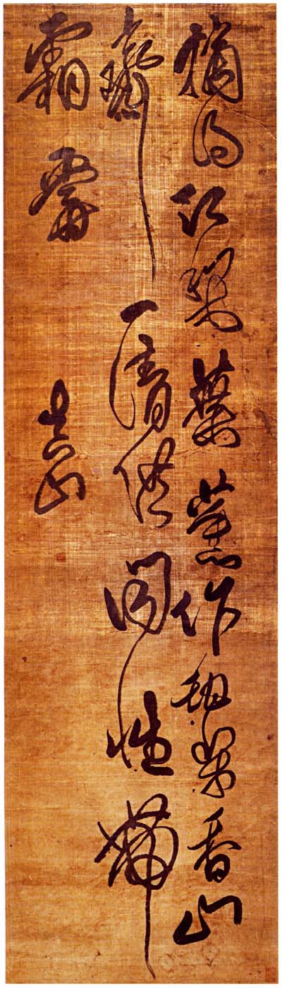 傅山《摘得红梨叶诗》轴 绢本 168x47cm 山西省博物馆藏
