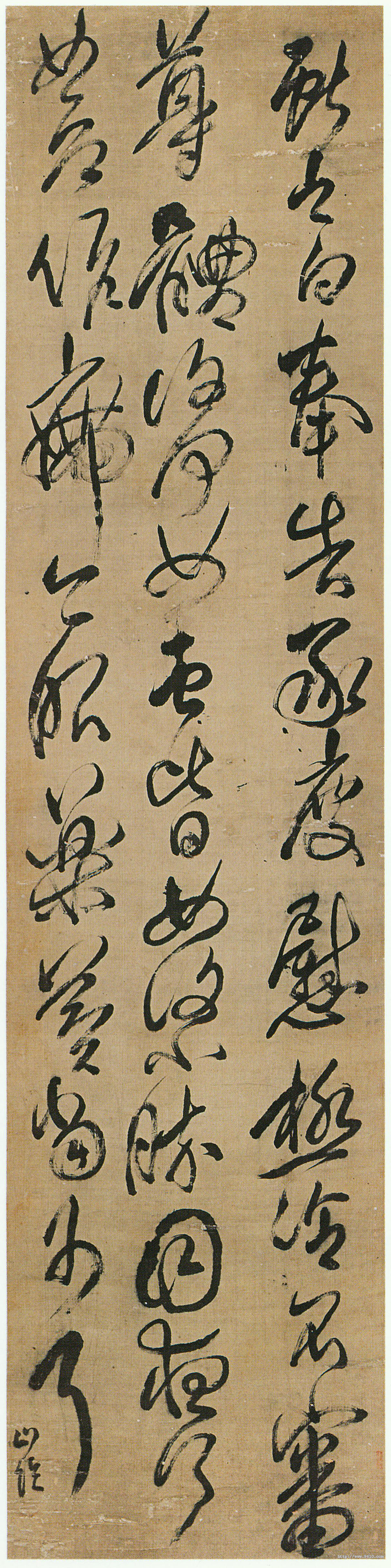 傅山 草书临王献之《安和帖》轴 绫本 192cm×47cm 山西省博物院藏