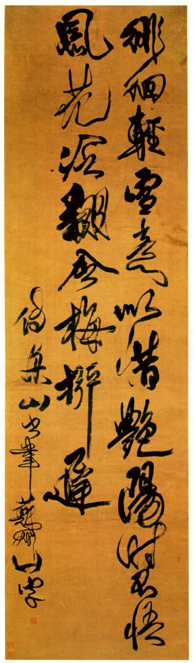 傅山《行书韦应物咏春雪诗》绫本 190×54cm 山东省博物馆藏