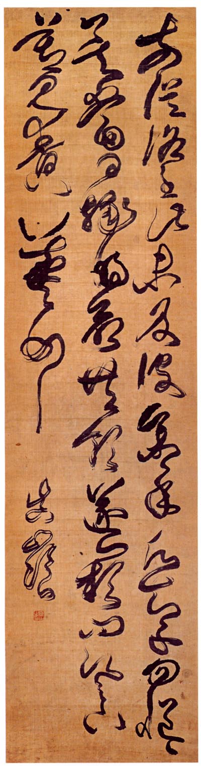 傅山 《草书临王羲之明府帖》轴 绢本 191cm×49cm 山西省博物院藏