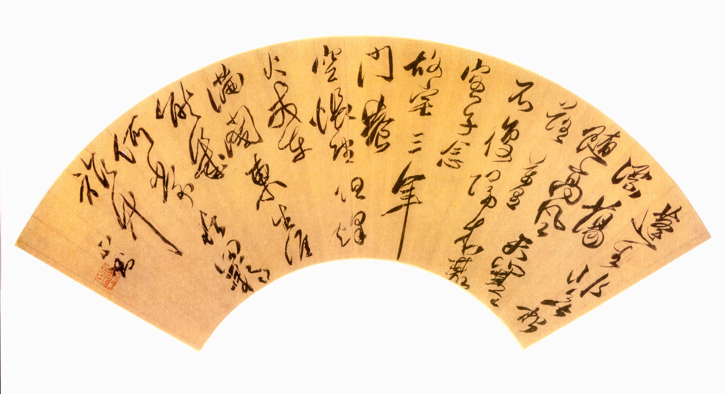 傅山《草书杜甫遣兴之一诗扇》金笺草书 16×52.1cm 北京故宫博物院藏