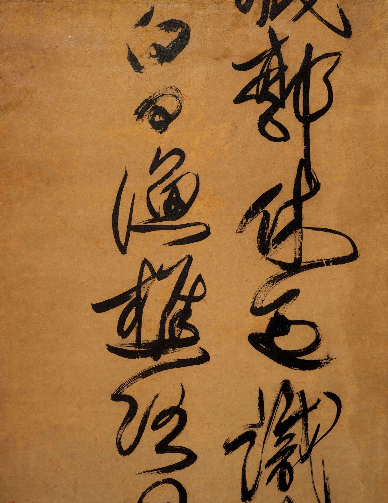 而王铎大草之作,则行笔相对较慢,不疾不迟,一片神行而处处用意,虽大草连绵,而字字造形完美。真乃“应物象形,其天机迥高,思与神合,创意立体,妙合化权”。亦即“气韵生动出于天成,人莫窥其巧者。”