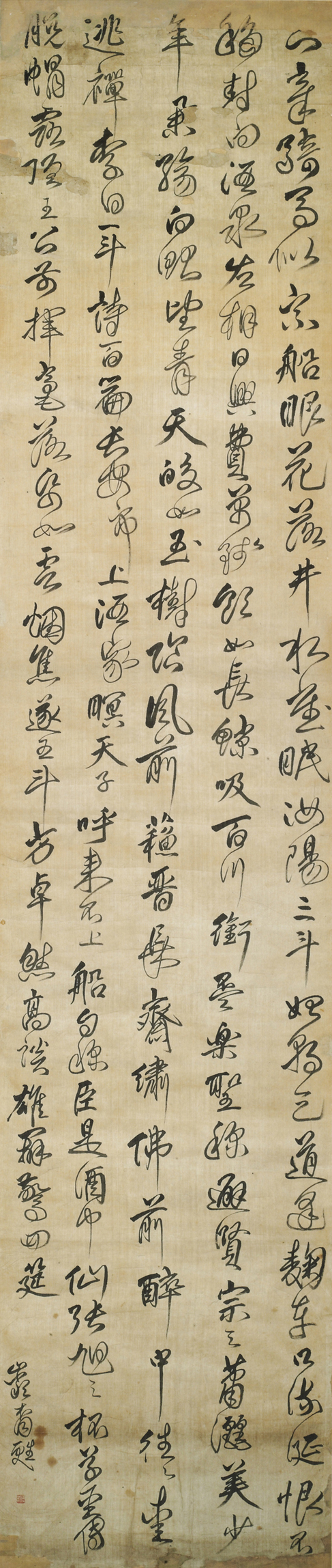 傅莲苏《草书上官昭容游长宁公主流杯池二十五首之十九诗》轴 纸本 148.5×45cm 山西省博物院藏