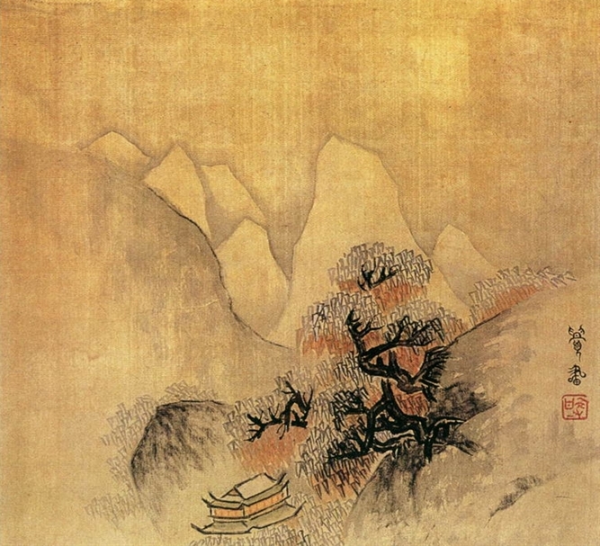傅山 傅眉《丘壑磊珂图》册页 绢本 设色 22.2×24.5cm 天津艺术博物馆藏