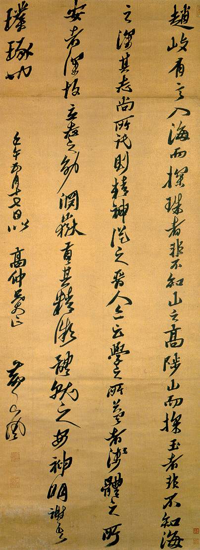黄道周《赠高仲兄丈文语轴》冷金笺 行书 143.2×53.8cm 崇祯十五年(1642)上海博物馆藏