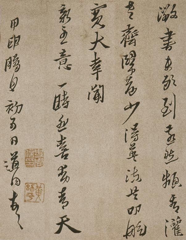 黄道周《舟次吴江诗册》纸本行书(局部) 20.6×36cm,崇祯十七年(1644年)首都博物馆藏