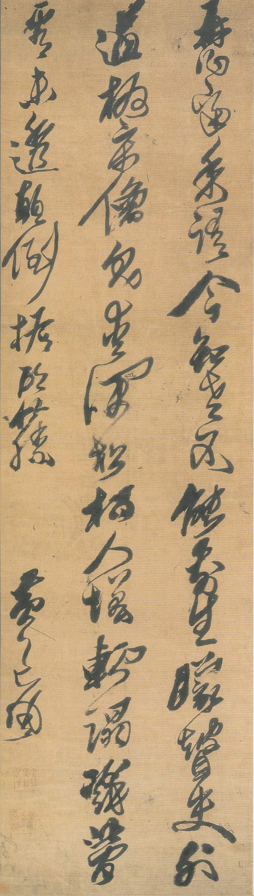 释文:再作富年语,今知老不能。前生蒙瞽吏,外道板床僧。鬼爱深松柏,人憎软踏?(登毛)。此间看未透,颠倒檐头藤。黄道周。