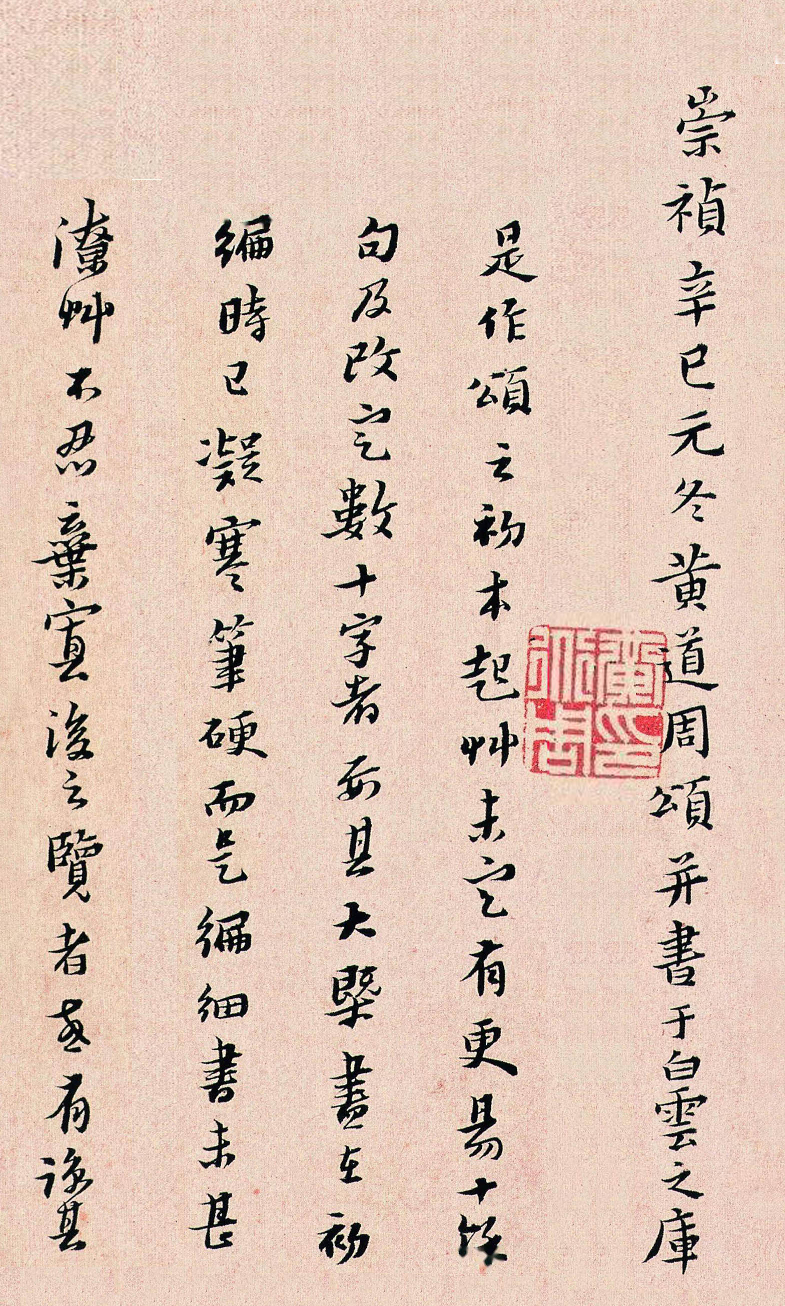《孝经颂》款署“崇祯辛巳元冬黄道周颂并书于白云之库”后又“十月初七日再顿首识”,考,崇祯辛巳即崇祯十四年(1641年)春,黄道周仍羁于狱中。在狱中,黄道周“时时为书《孝经》以当役钱,凡手书《孝经》一百二十本,皆以狱卒持去,散尽无余。”直至崇祯十四年腊月谪戍辰阳,此篇正是狱中之作。