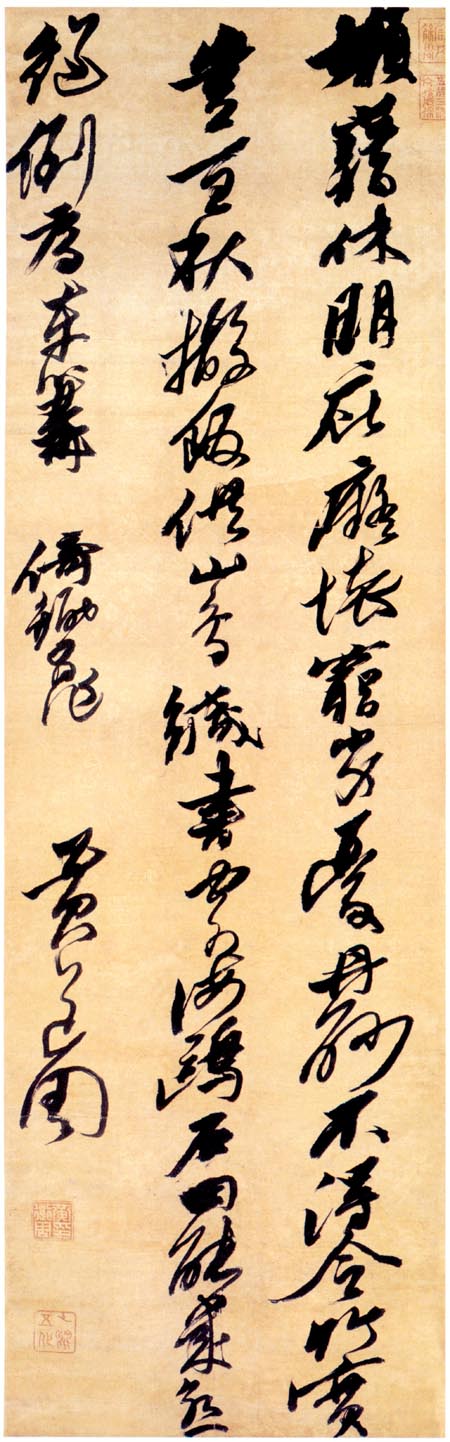 黄道周《倚锄五言诗轴》绫本 行草书 172.8×52.9cm 浙江省博物馆藏