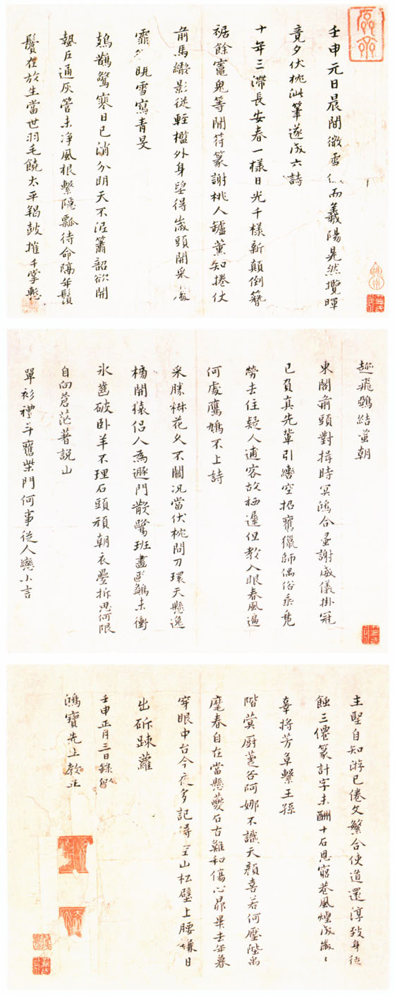 黄道周《自作诗六首诗册》纸本 楷书 26.8×32.2cm ×3 崇祯五年壬申(1632年) 浙江省博物馆藏