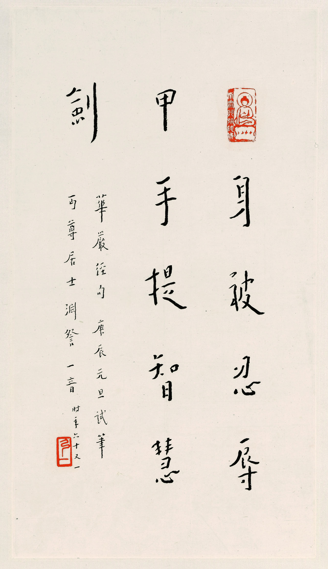 释文:身被忍辱甲,手提智慧剑。