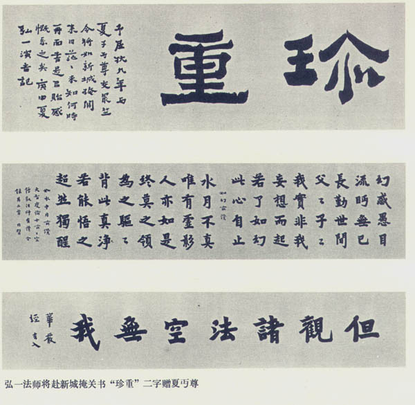 弘一法师将赴新城掩关书「珍重」二字赠夏丐尊