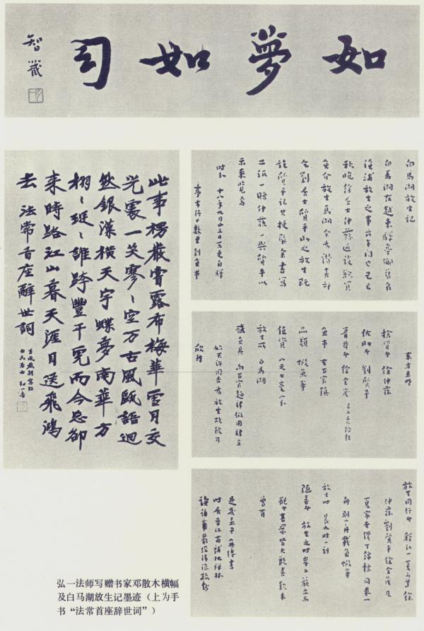 弘一法师写赠书家邓散木横幅及白马湖放生记墨迹 弘一法师手书「法常首座辞世词」墨迹