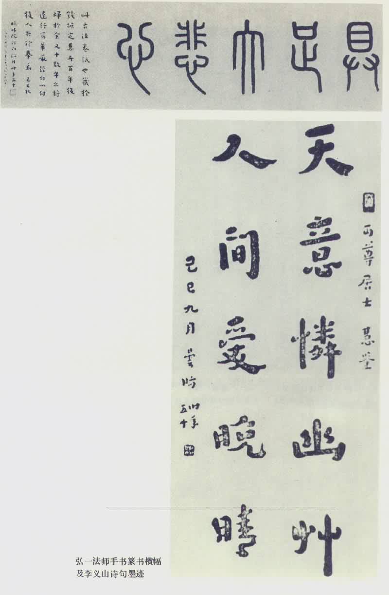 弘一法师手书篆书横幅及李义山诗句墨迹