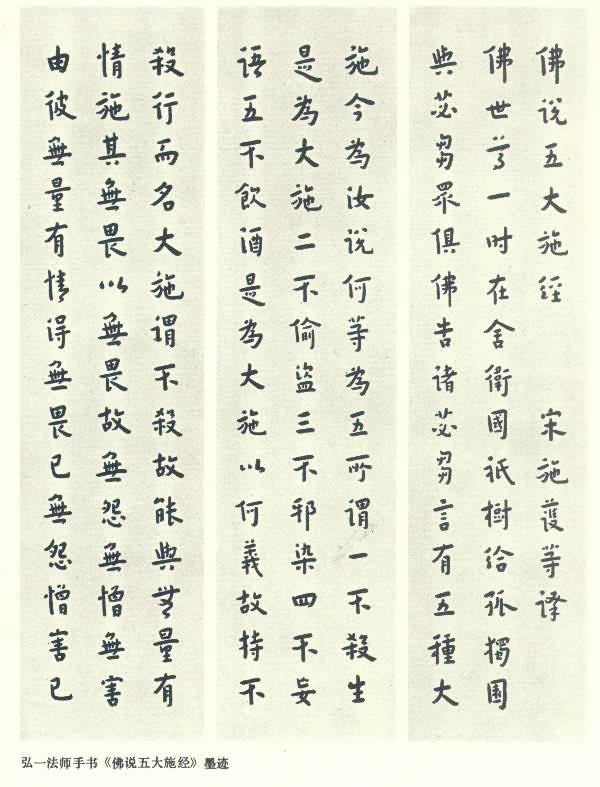 弘一法师手书《佛说五大施经》墨迹