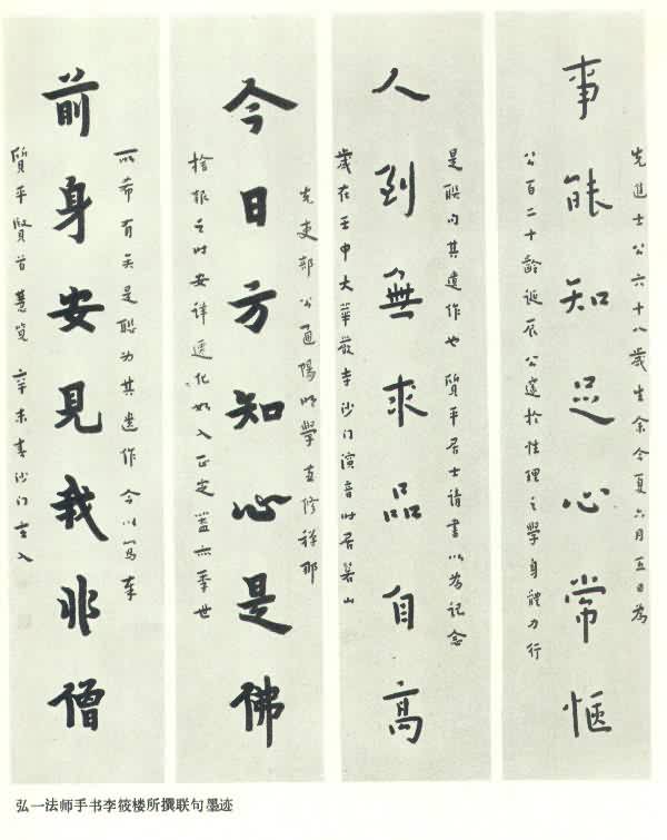 弘一法师手书李筱楼所撰联句墨迹
