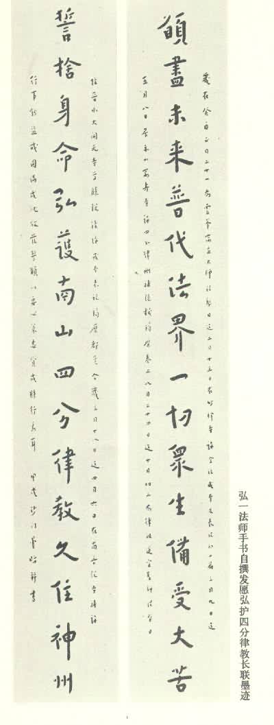 弘一法师手书自撰发愿弘护四分律教长联墨迹