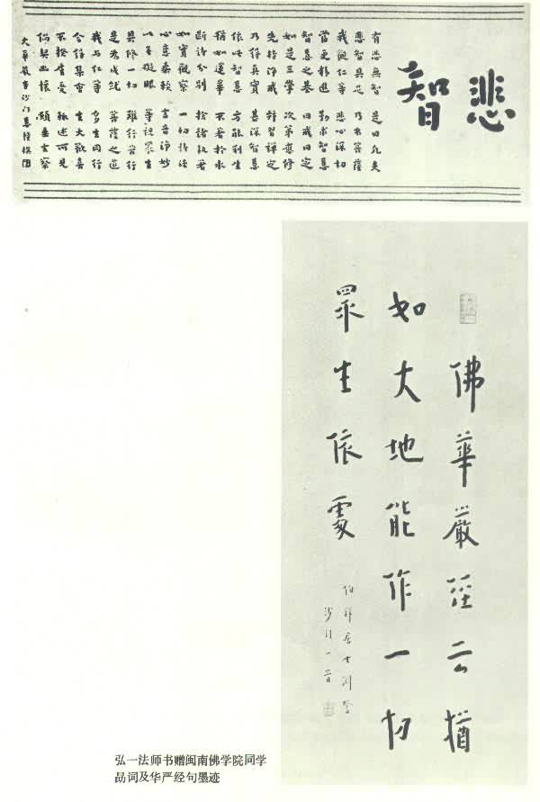 弘一法师书赠闽南佛学院同学勗词「悲智」及华严经句墨迹