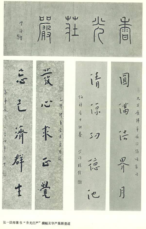 弘一法师篆书「香光庄严」横幅及华严经集联墨迹