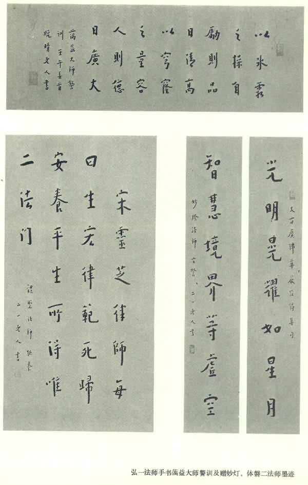 弘一法师手书湡益大师警训及赠妙灯、休磐二法师墨迹
