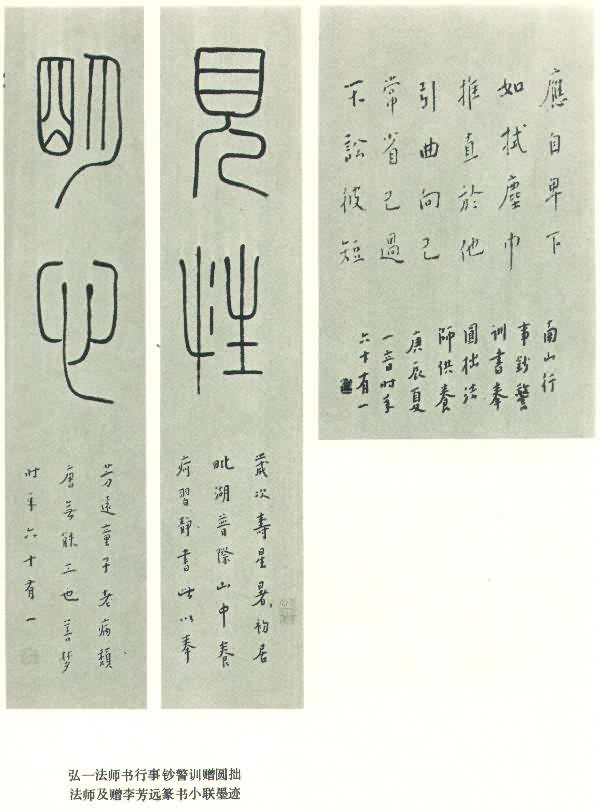 弘一法师书行事钞警中赠圆拙法师及赠李芳远篆书小联墨迹