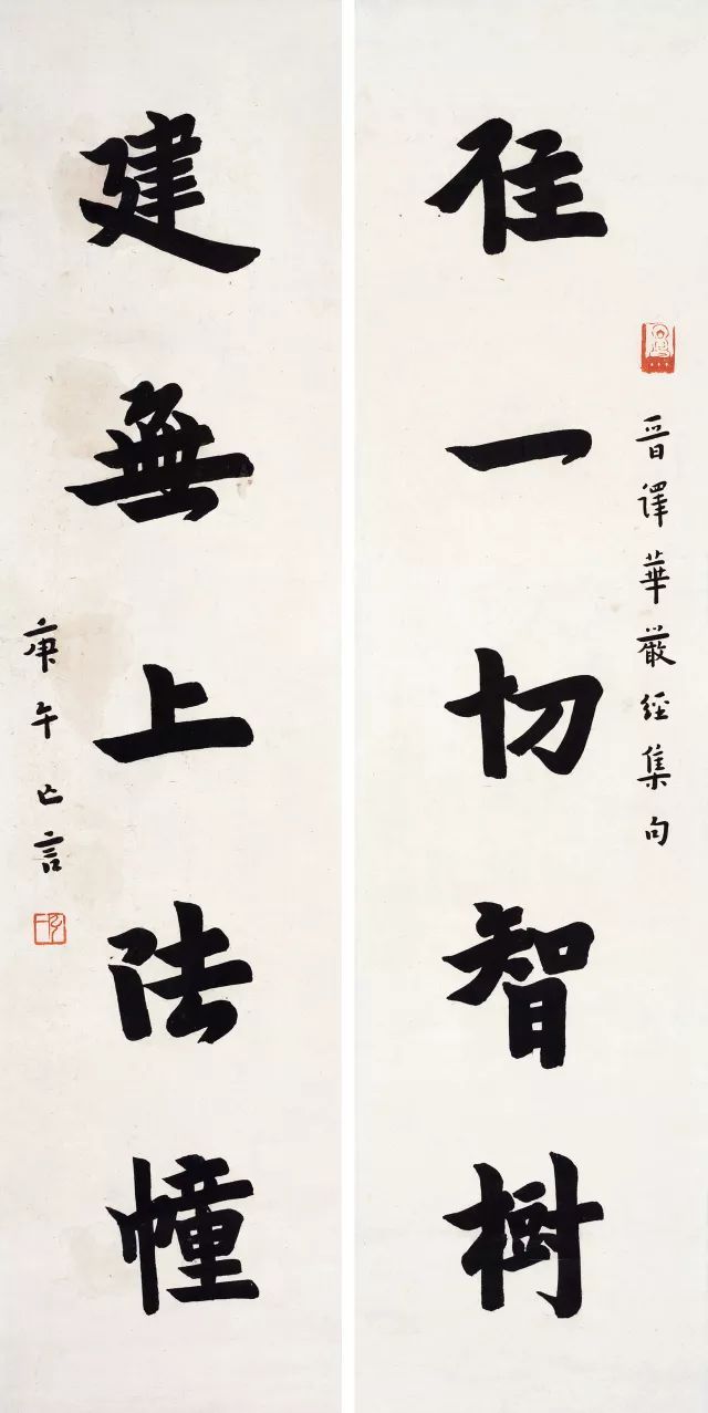 弘一《楷书住一建无五言联》纸本 67×17 cm×2 1930年