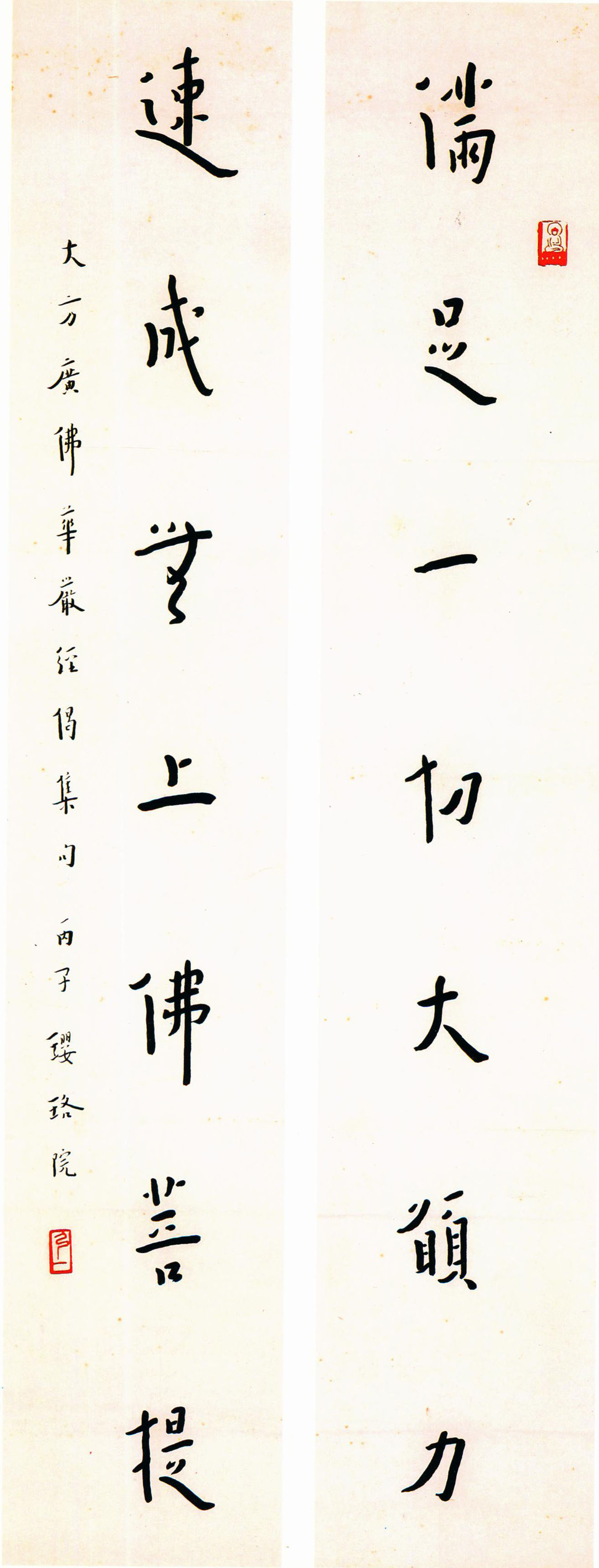 释文:满足一切大愿力,速成无上佛菩提。——大方广佛华严经偈集句。丙子,璎珞院。