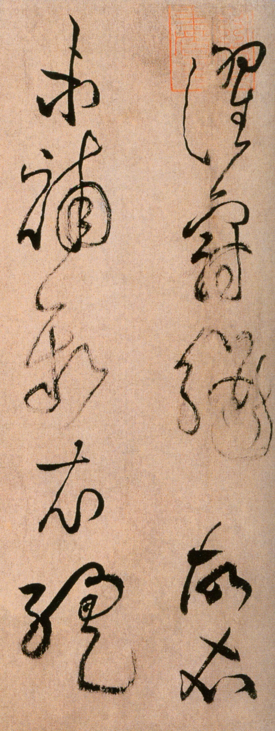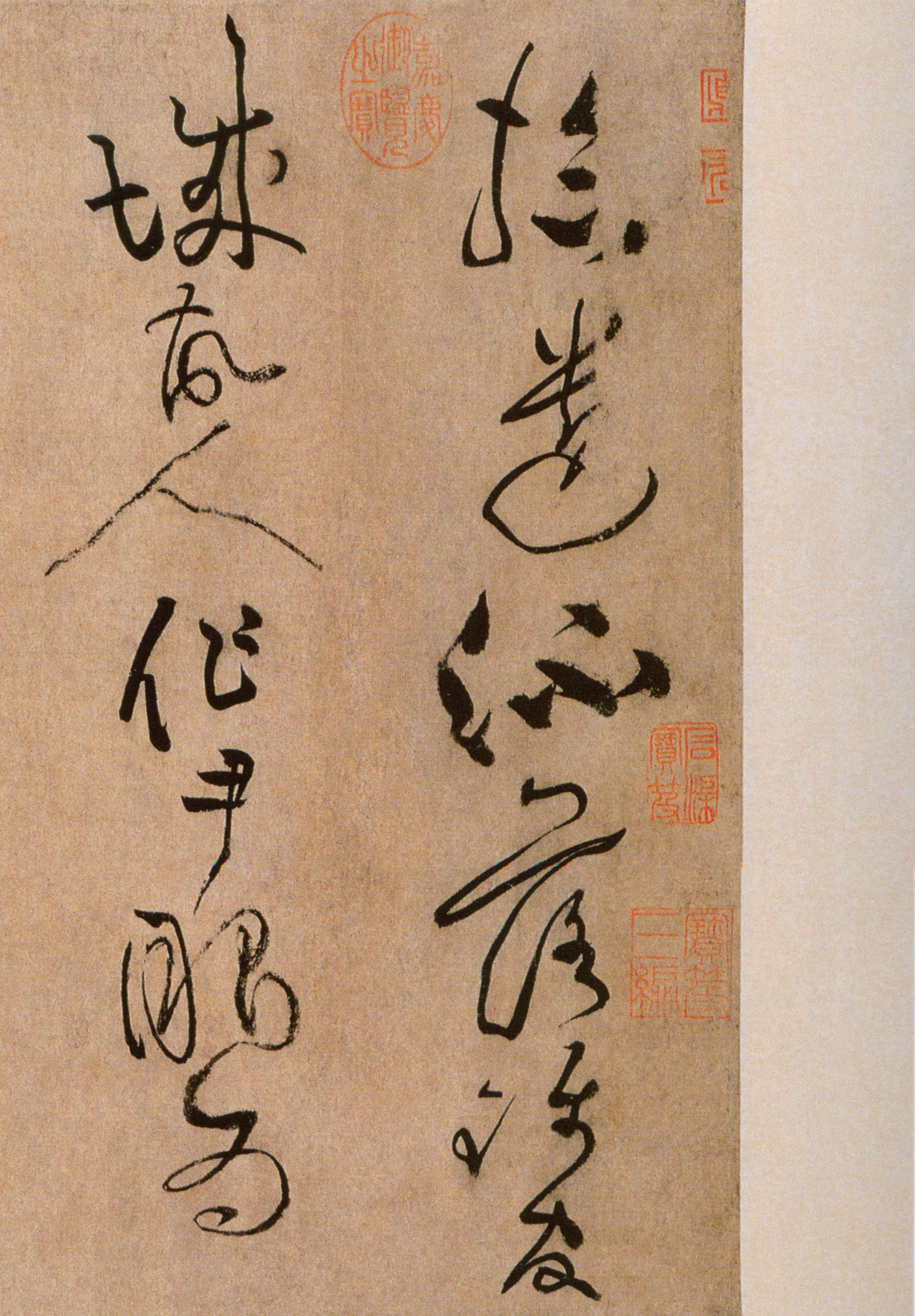 此诗收入《山谷外集》,作于北宋元祐三年(1088年),黄庭坚时年42岁。作品笔法苍老,多骨少肉,具有作者晚年书法的风格特征。卷后明王世贞跋中评道:“……老杜浣花溪图引也。歌词力欲求奇,然是公最合作语。书笔横逸疏荡,比素师饶姿态,亦稍平易可识。而结法之密、腕力之劲、波险神奇,似小不及也……。”跋文中“素师”是指唐代著名书家怀素,王世贞对黄庭坚与怀素书法特点的比较非常准确。此件作品虽然残处较多,仍不失为佳作。