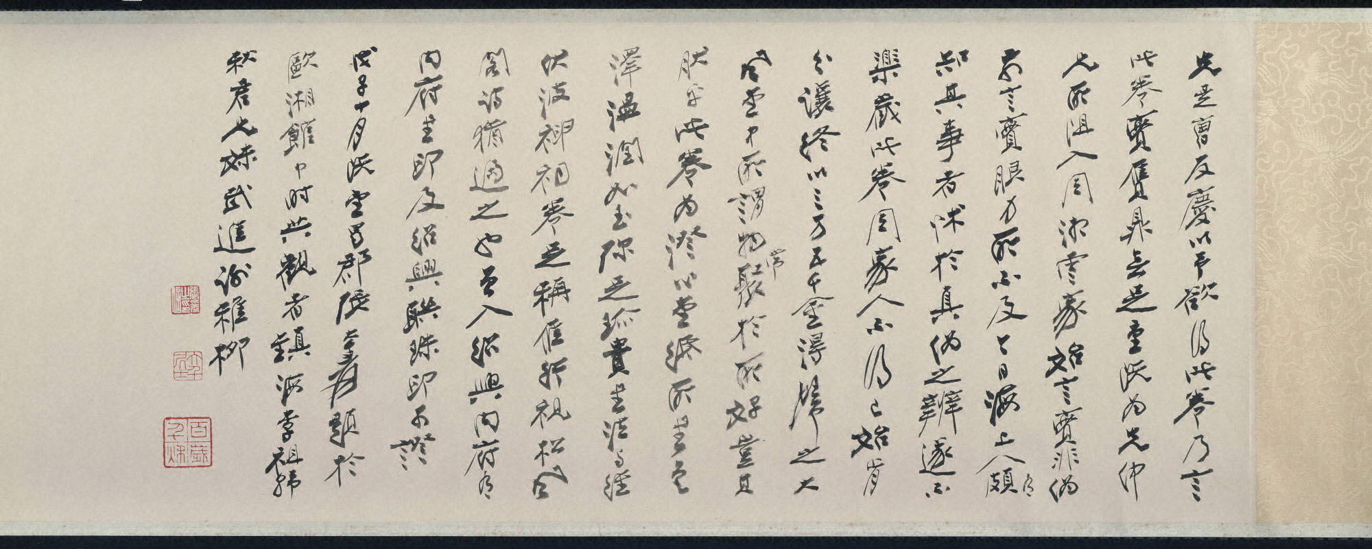 黄庭坚《行书赠张大同卷》纸本行书 34.1×552.9cm 元符三年(1100年) 美国普林斯顿大学艺术博物馆 (John B. Elliott寄赠)