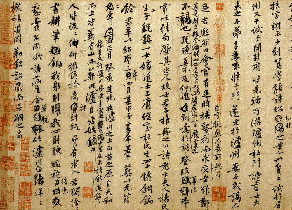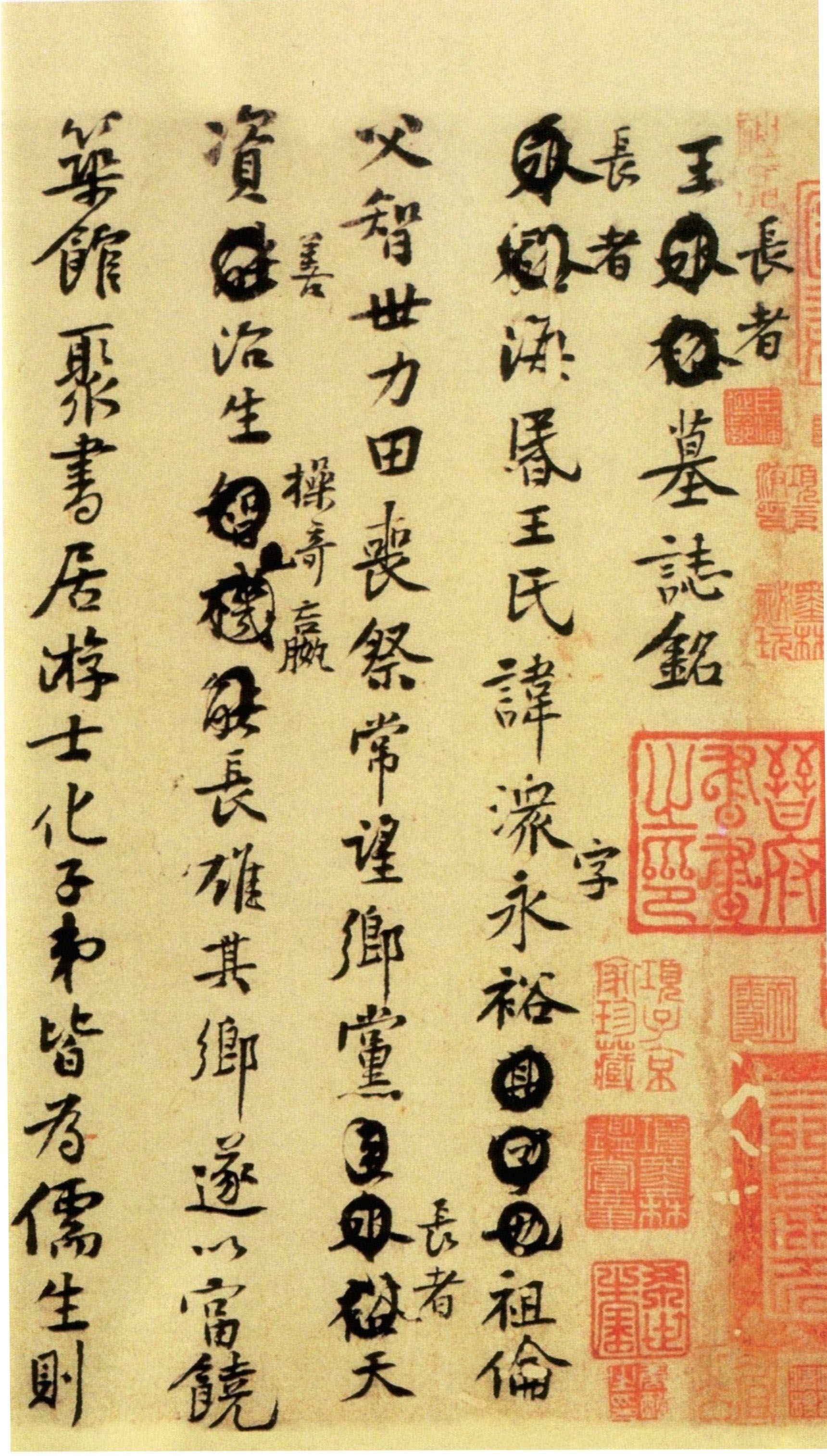 此卷为《王长者墓志铭稿》和《宋卢南诗老史翊正墓志铭稿》合成。分别书约于黄庭坚四十至四十五岁、五十五岁前后至六十岁之间。