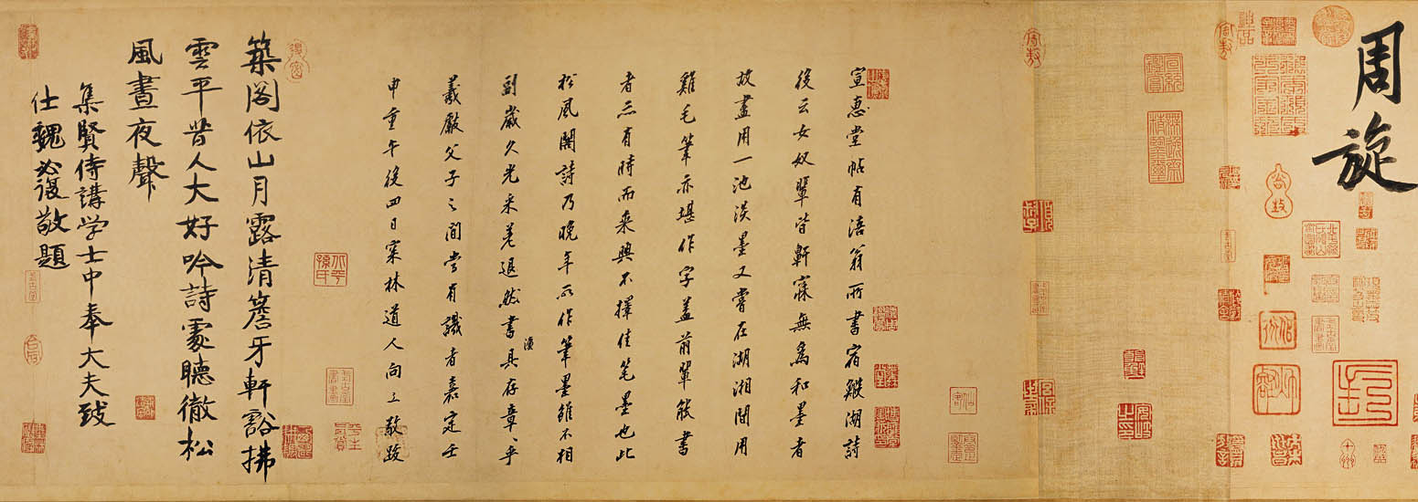黄太史书。自谓得江山之助。此诗与书皆其得意处。涪翁人品如此。诗什又如此。书法又如此。宜其為内家之珍玩也。翰林侍读学士李源道拜观。 李源道 李源道,关中人,字仲渊,号冲斋。元延祐中,官云南行省参政知事。