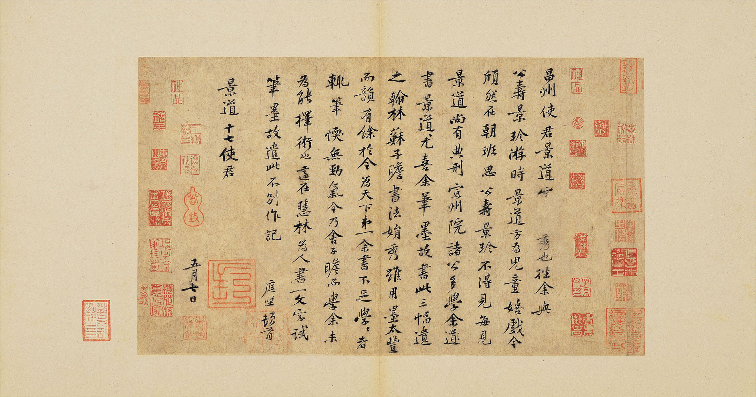 黄庭坚《致景道十七使君尺牍》宋人袁立儒、范成大题跋 台北故宫博物院藏