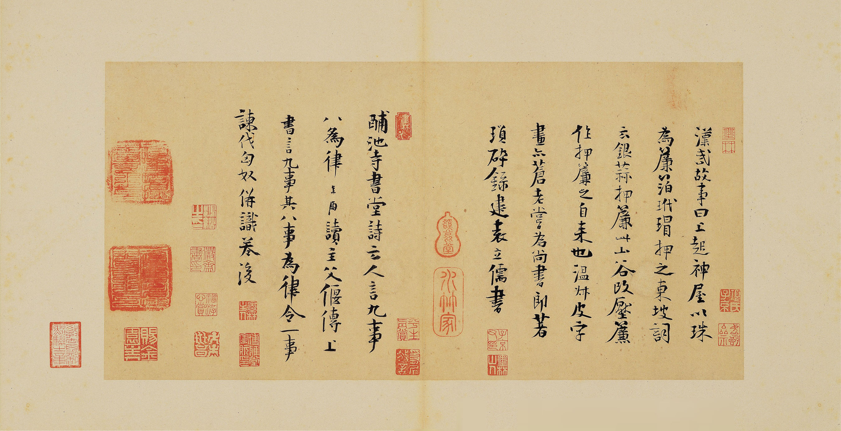 酺池寺書堂詩云。人言九事八為律。立儒讀主父偃傳。上書言九事。其八事為律令。一事諫伐匈奴 。併識卷後。