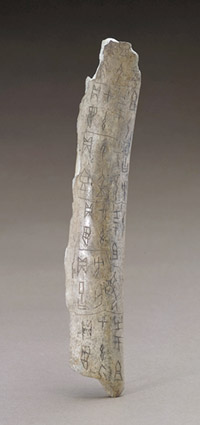 这是殷王武乙(文丁?)贞问祭祀先公、先王的占卜用牛肩胛骨,长10.5cm ,宽3cm。