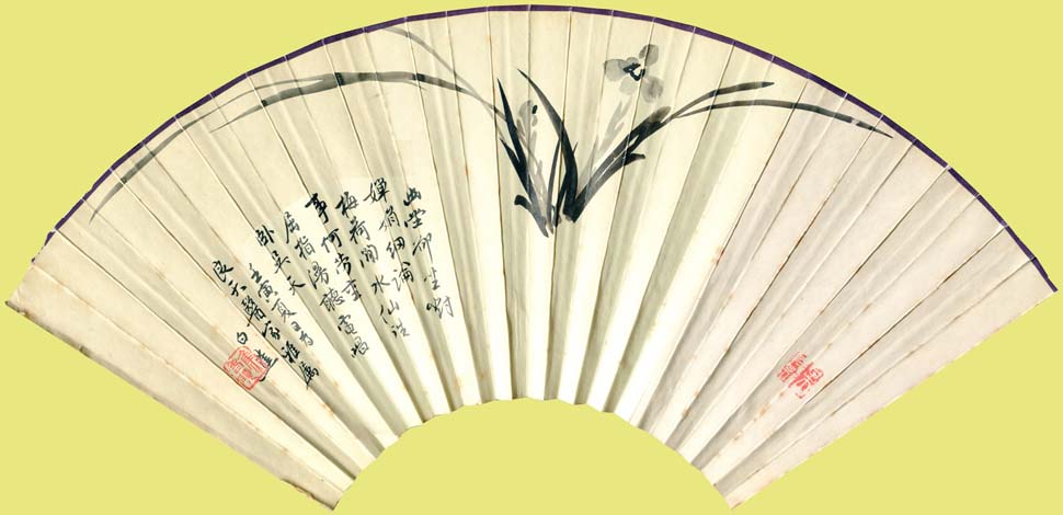 白蕉 《夏日兰花扇》 壬寅(1962年)