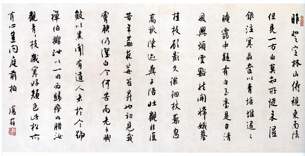 【释文】昨登定林山。俯视东南陔。但见一方白,莫知所从来。湿银注寒晶,奁以青培堆。迢迢晻霭中,疑有白玉台。是夕清风兴,烦云豁然开。嫦娥攀桂枝,顾景久徘徊。杖藜忽高秋,陈迹与子陪。壮观非复昔,平芜夜莓苔。昇也初见我,肤腴仍洁白,今何苦而老,手脚皴以黑。闻有道人者,於今号禅伯。 嬲汝以一句,西归瘦如腊。 汝观青青枝,岁寒好颜色。 此松亦有心,岂问庭前柏。复翁。