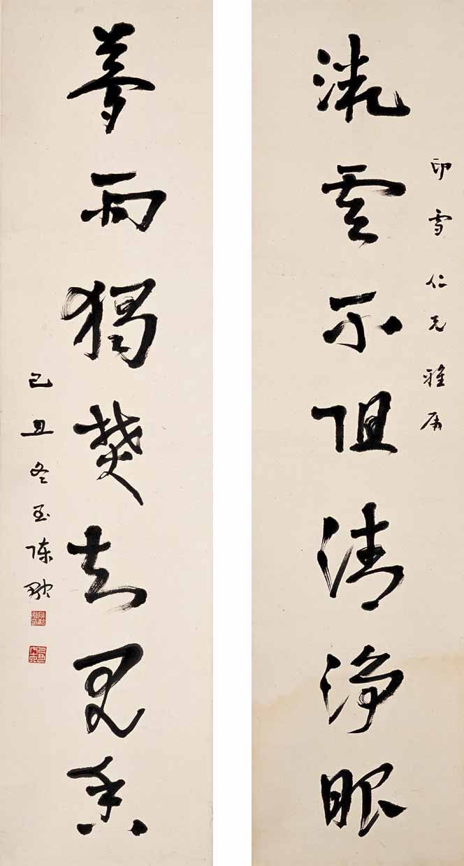 草书七言联 纸本 1949年作 各纵109厘米 横27厘米 澳门博物馆藏