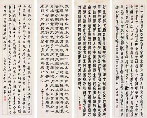 《四体四屏》 104.5 x 31.5cm x 4 平居藏 广东历代书法展