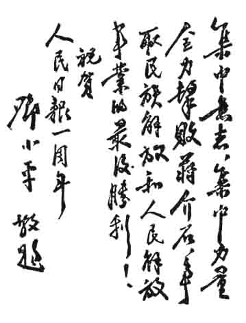为晋冀鲁豫《人民日报》创刊一周年题词