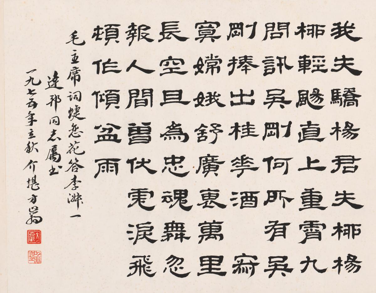 方介堪《隶书毛泽东蝶恋花答李淑一词》 来自网络