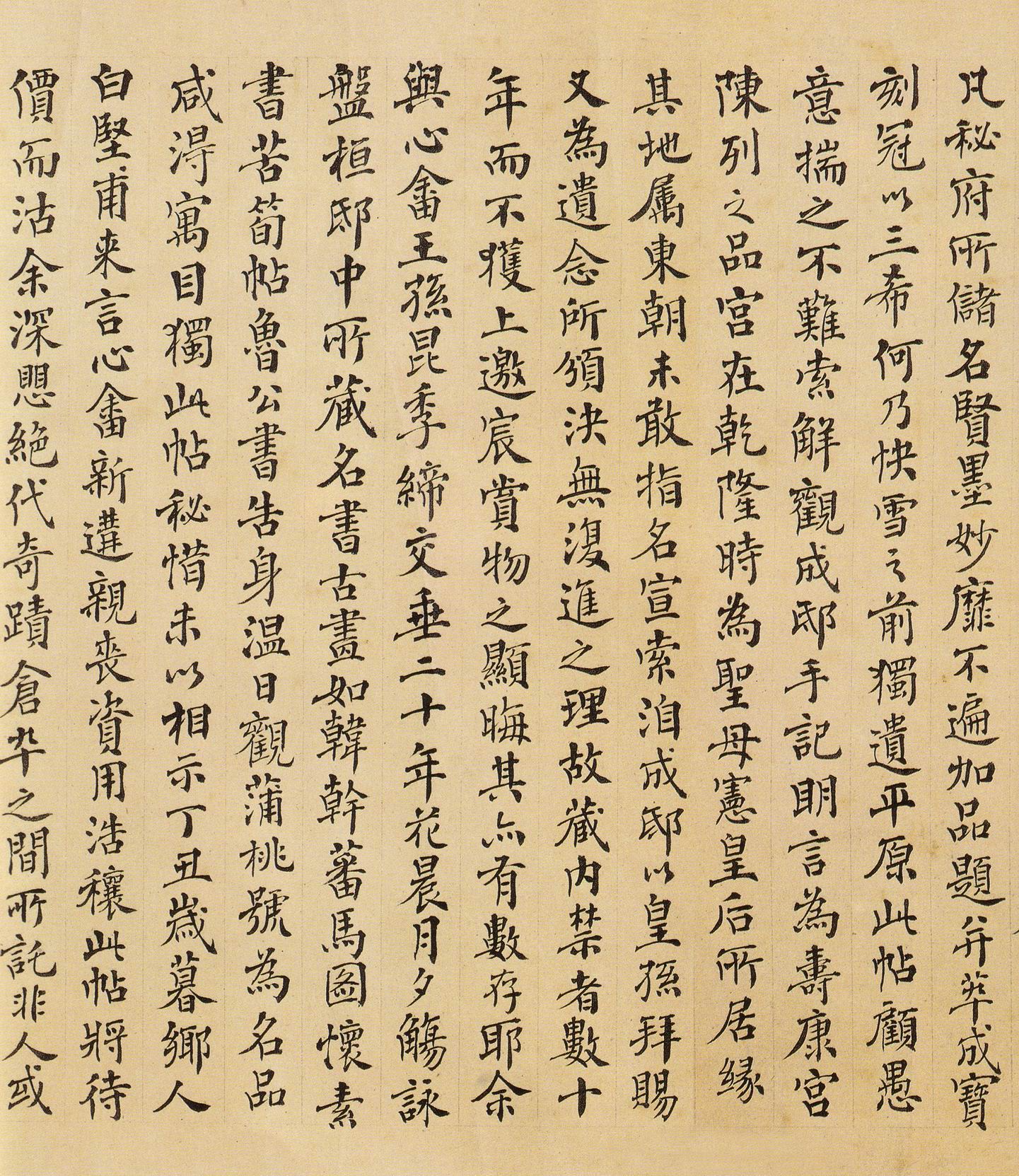 傅增湘先生的书法以楷书和行书为主。楷书兼容欧、柳,晚年又间些魏碑笔意,字迹端庄典雅。行书以二王为基础,融唐碑笔意,于俊秀中添加了豪气,在转折处颇见楷书功底。提到傅增湘先生,就一定要提到《平复帖》。尤其是傅增湘写在书后的跋文,工整流畅且活泼,为文人字之典范。
