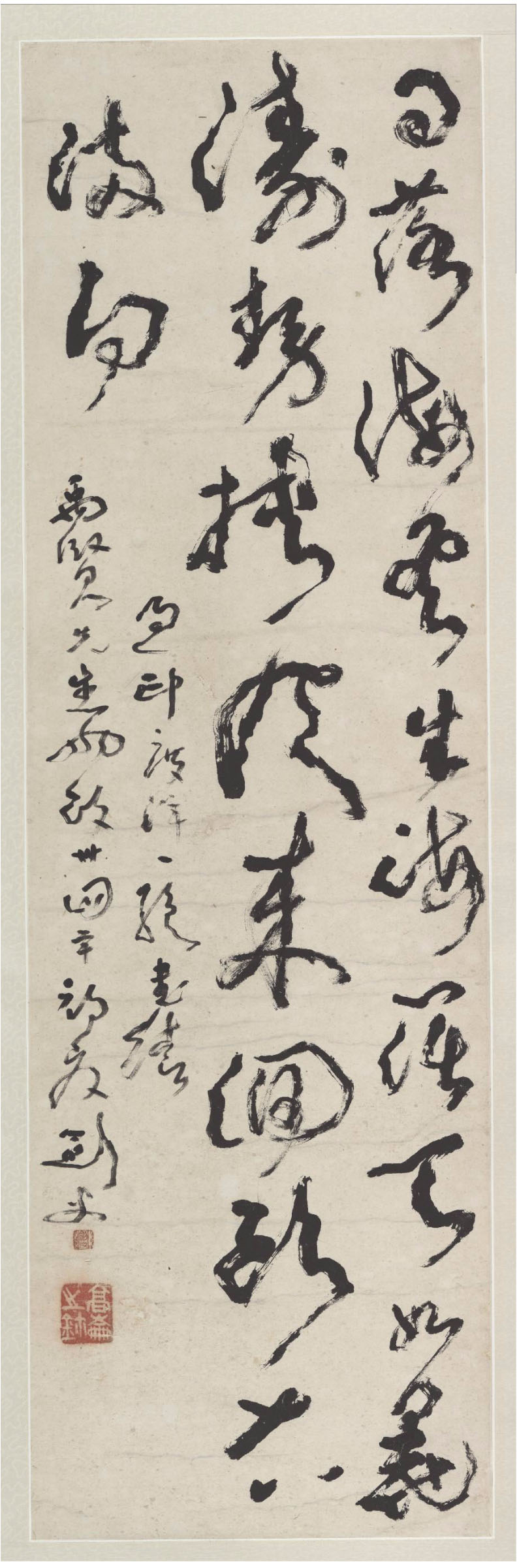 高剑父《过印度洋五言诗轴》纸本 100×31cm 乙酉(1945) 台湾中央研究院岭南美术馆藏